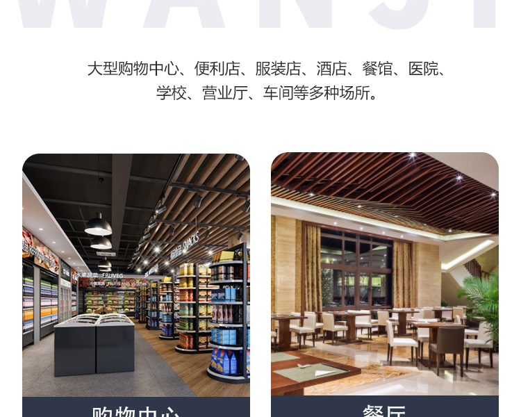 應 用:商場、劇院、賓館、飯店、會議廳